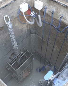 Remplacement d’une pompe, des barres de guidage en inox et les supports supérieurs ainsi que les clapets.
