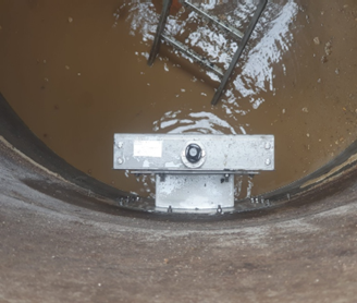 Dépose des guides de l’ancien dégrilleur, mise en place d’une pièce d’adaptation mécano soudée en inox pour adapter la vanne à l’ouvrage circulaire